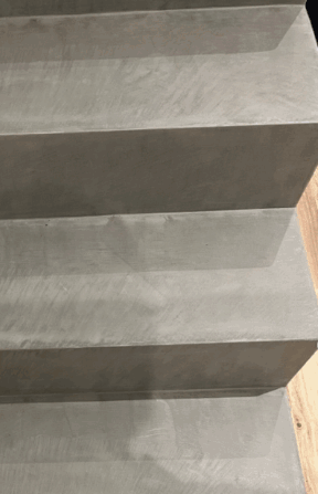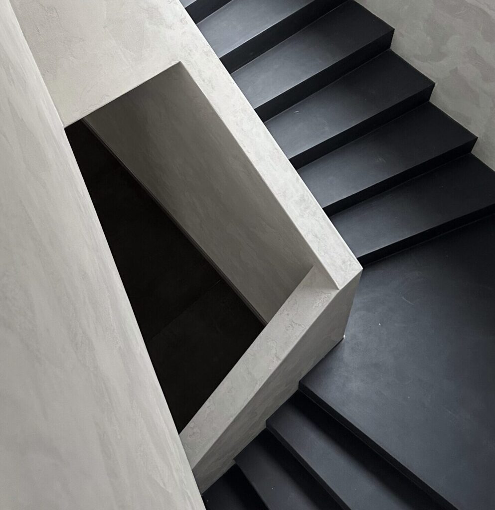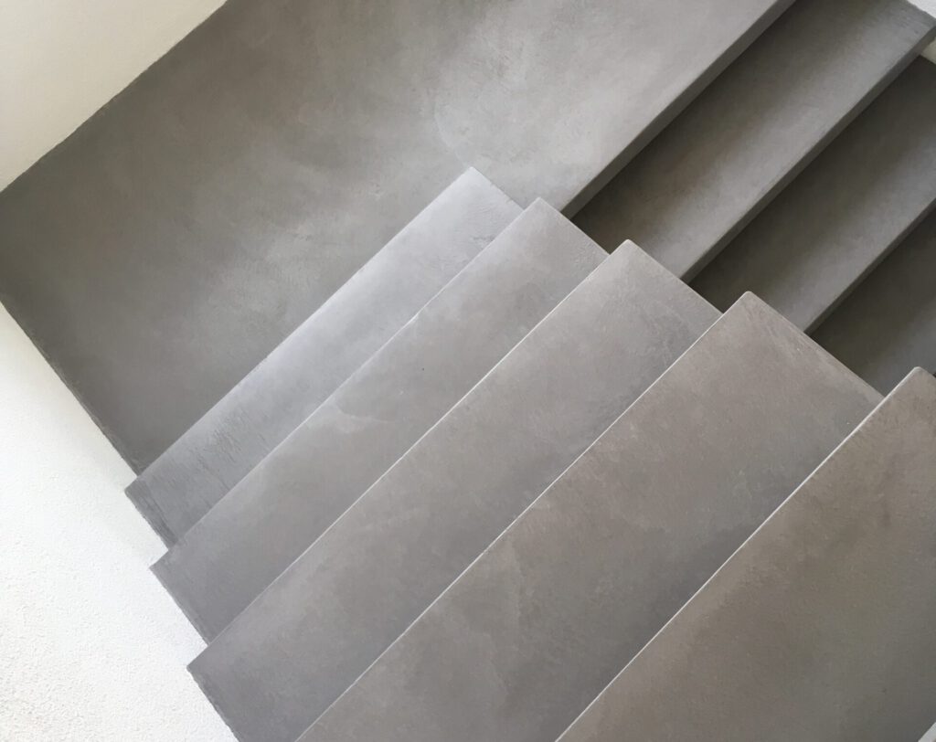 Verleihen Sie Ihrer Treppe ein zeitloses Design mit strapazierfähigen, fugenlosen Oberflächen – wahlweise homogen und dezent wolkig oder rustikal mit bewusst sichtbaren Spachtelschlägen.