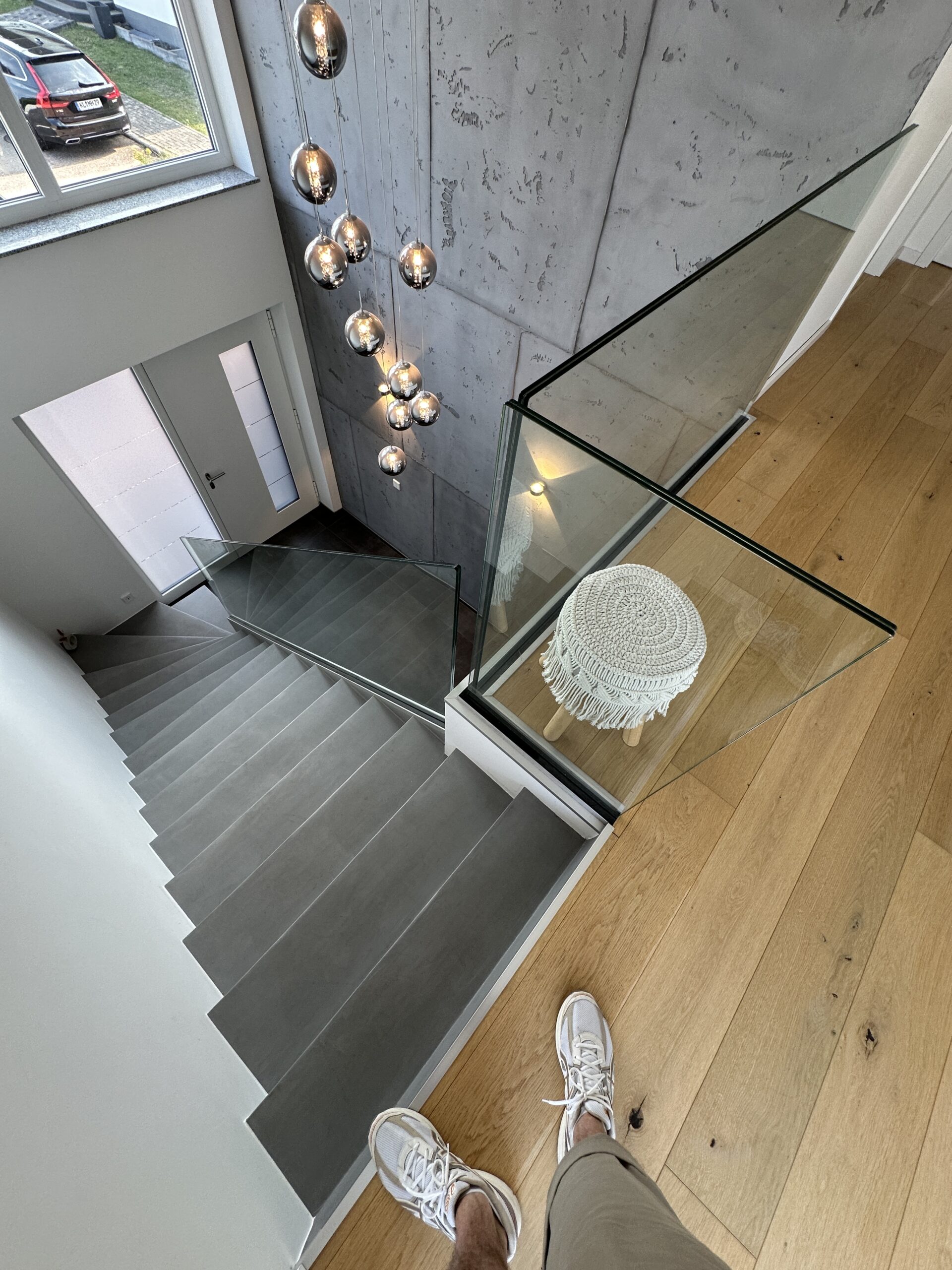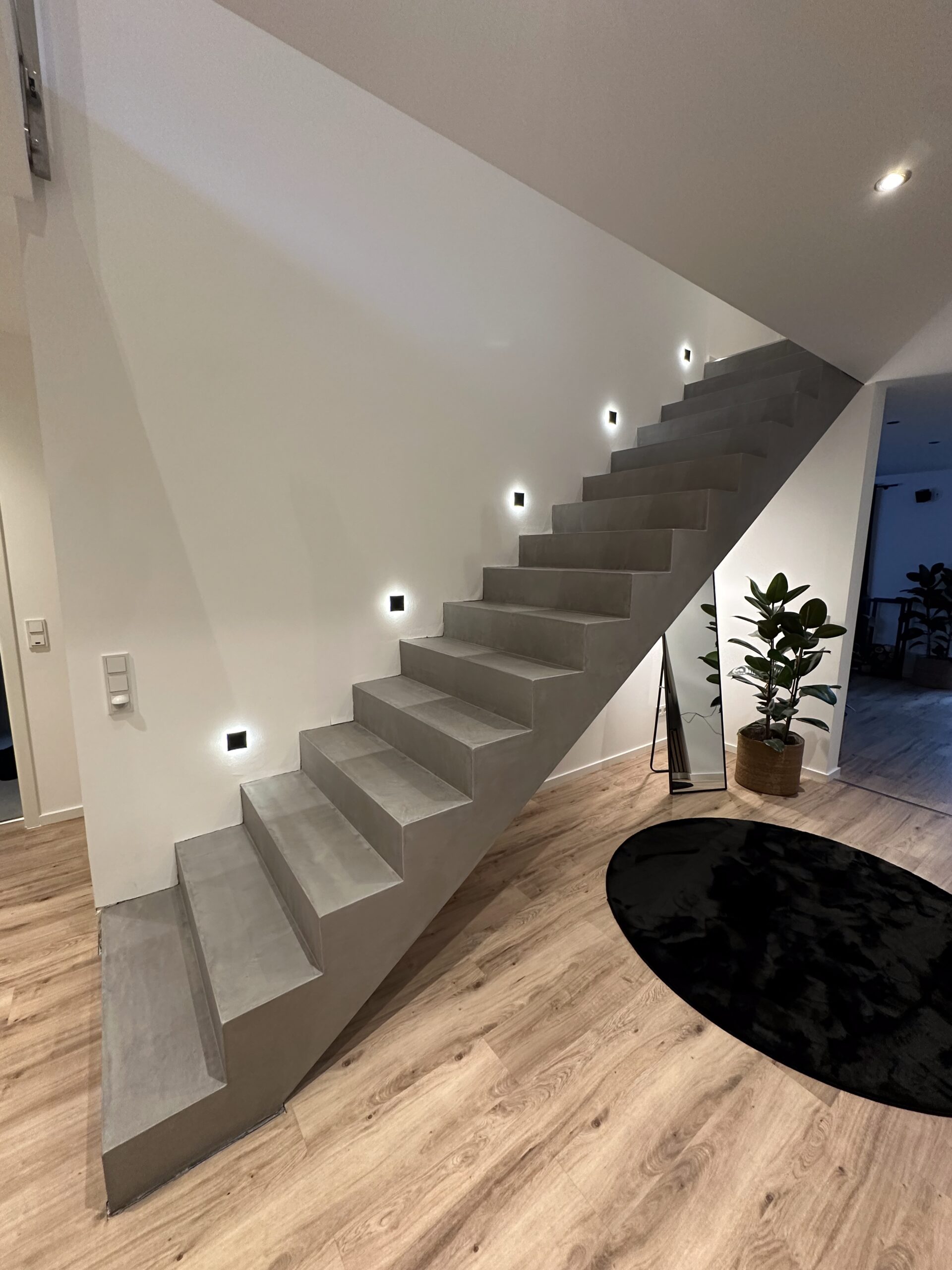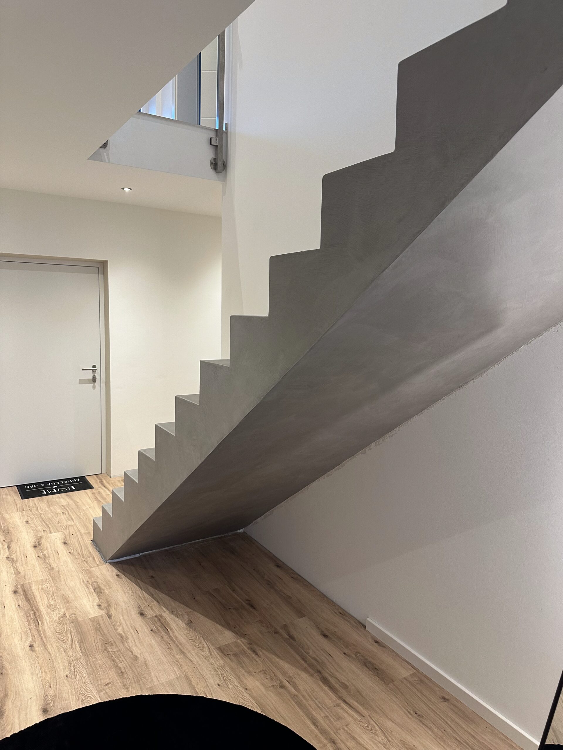 Spachteltreppen vereinen modernes Design mit höchster Funktionalität. Durch die fugenlose Verarbeitung entsteht ein ruhiges, elegantes Erscheinungsbild, das jede Treppe zum Blickfang macht.