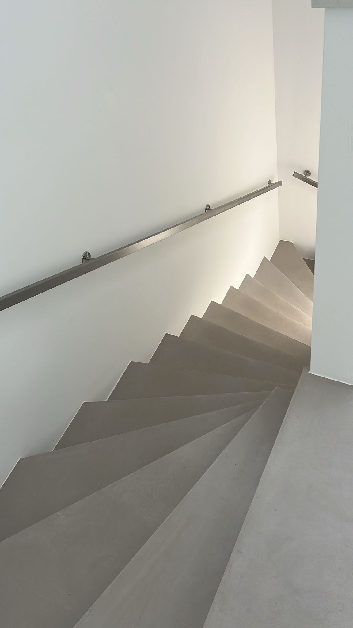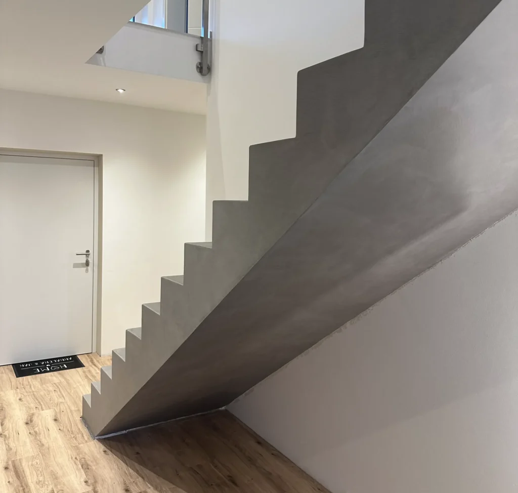 Dieses fugenlose Erscheinungsbild passt ideal zu modernen Architekturstilen und setzt ein starkes Statement in jedem Wohn- oder Geschäftsbereich. Die glatte Oberfläche lässt sich zudem vielseitig kombinieren – ob mit Glasgeländern, Metallakzenten oder Holzdetails. So wird jede Spachteltreppe zu einem zeitlosen Designelement, das sich perfekt in Ihr Zuhause einfügt.